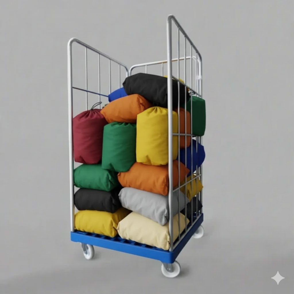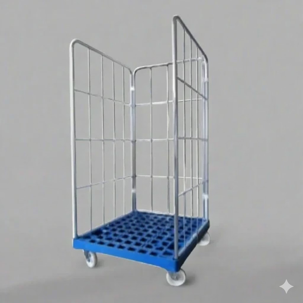 Catering rullecontainer med plastbund, galvaniserede sidestykker og 500 kg kapacitet. Vi beregner fragtprisen ud fra din ordre og leverings adresse – skriv til os, så giver vi dig en pris.